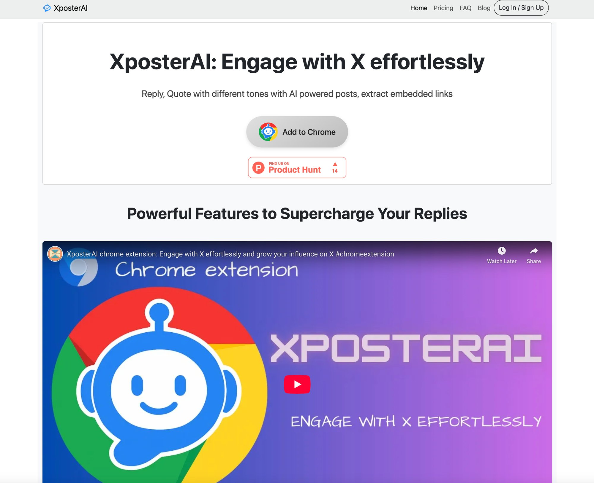XposterAI offers a straightforward pricing model. Access is provided through its Chrome extension, which is easy to install. While a free version is available with limited credits, the premium plan unlocks unlimited AI generations for a more intensive engagement strategy.
